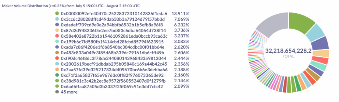 Market makers meeting the 0.25% threshold in Epoch 12 are now eligible to earn rewards in Epoch 13. 60 addresses (38 existing and 22 new) did more than =>0.25% of maker volume in Epoch 12. Learn more about the trading rewards program in our documentation, or our recent blog posts.